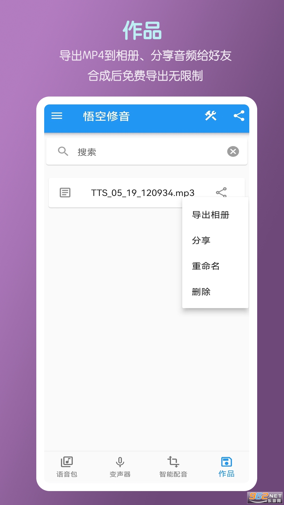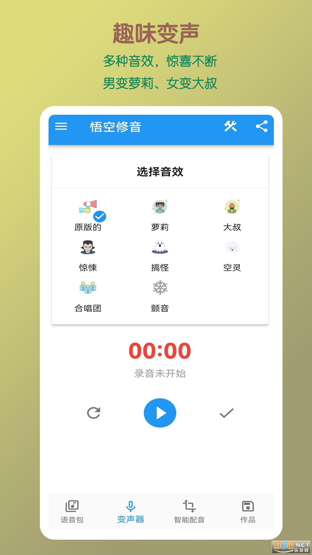 趣味变声:多种音效支持,完全免费,导出分享无任何限制。