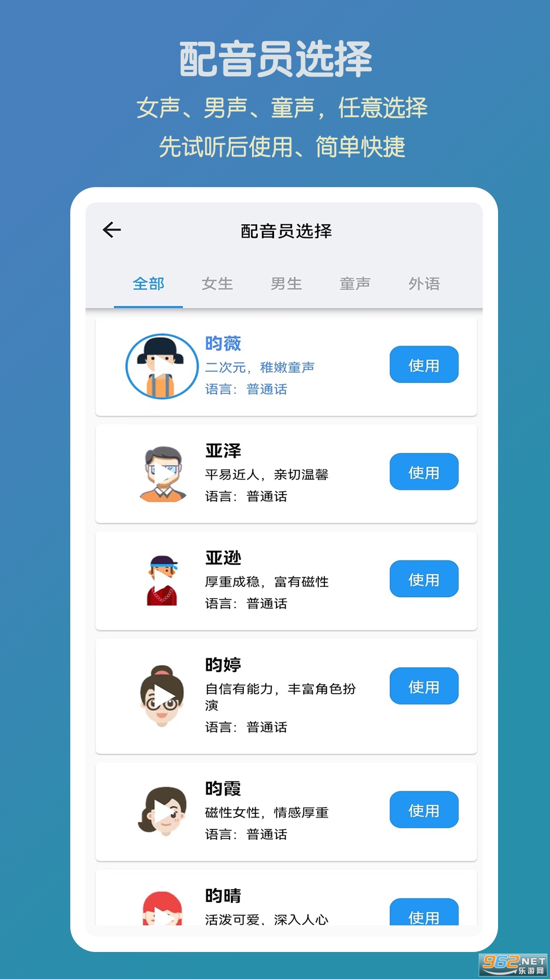 智能配音:操作简单、配音效果好、普通主播合成、导出分享无任何限制。