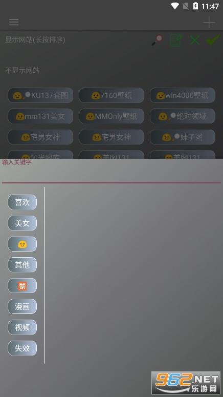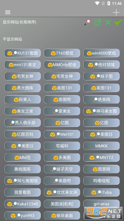 1、界面简洁干净,操作简单,点击右上角+号进行站点添加;内置数百个美图站点,支持搜索编辑位置,添加删除修改;
