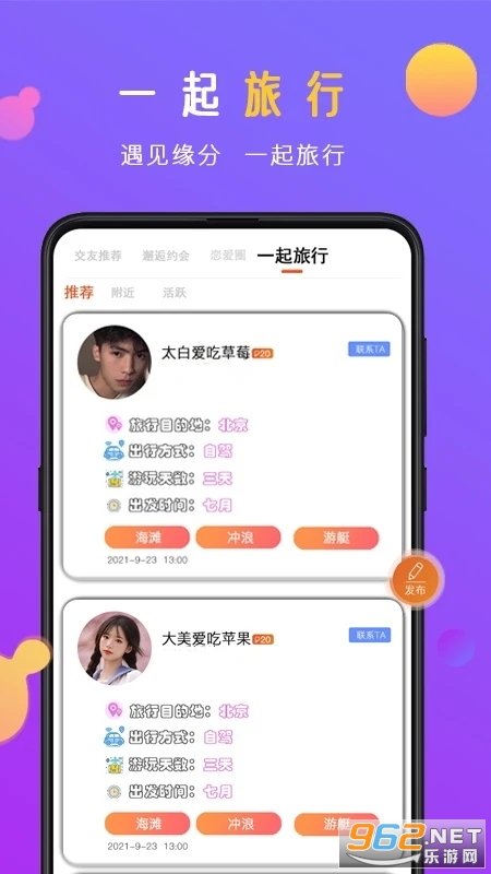 最喜欢的还是它里面的旅行模块,当你还是单身的时候,不想自己一个人去远方,可以发布自己的旅行目的地,让和你有共同需求的朋友一起远行