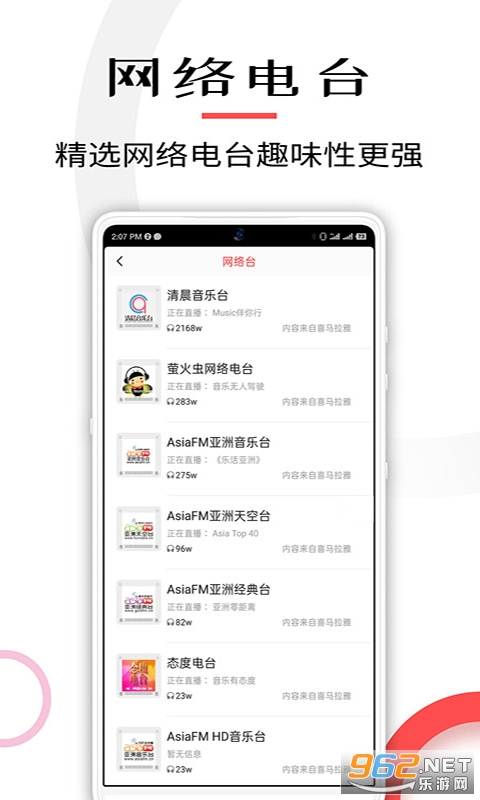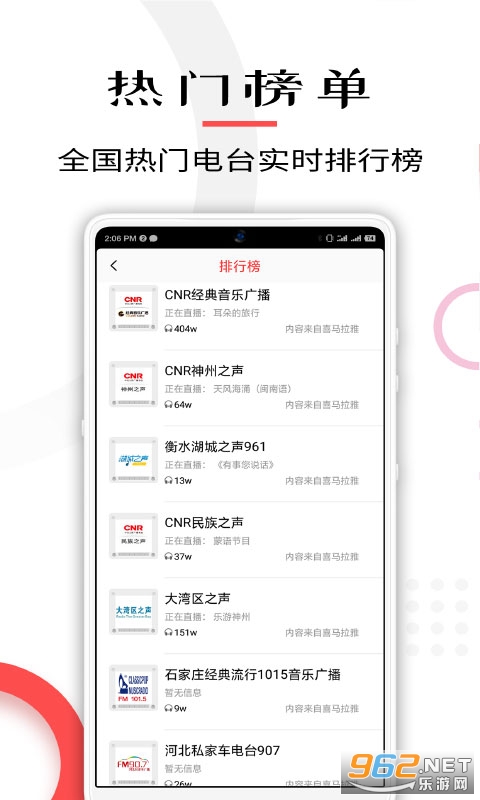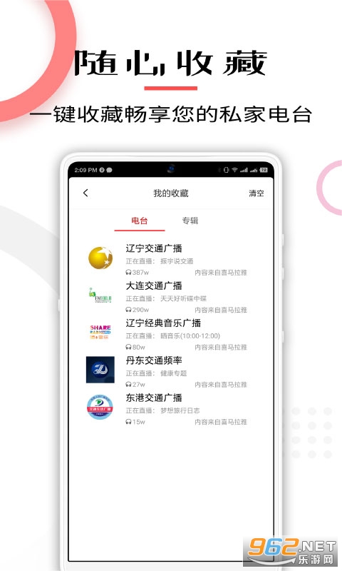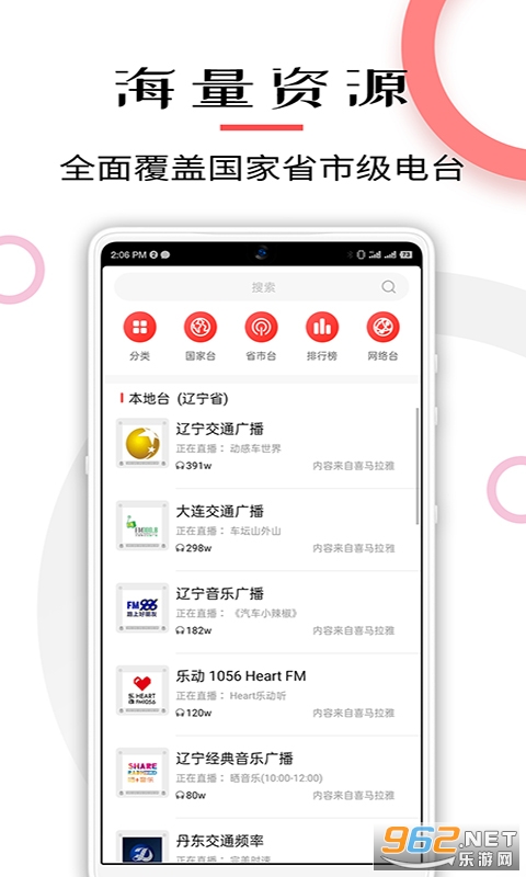 海量电台:支持全国所有省市电台、国家直属电台、火爆网络电台