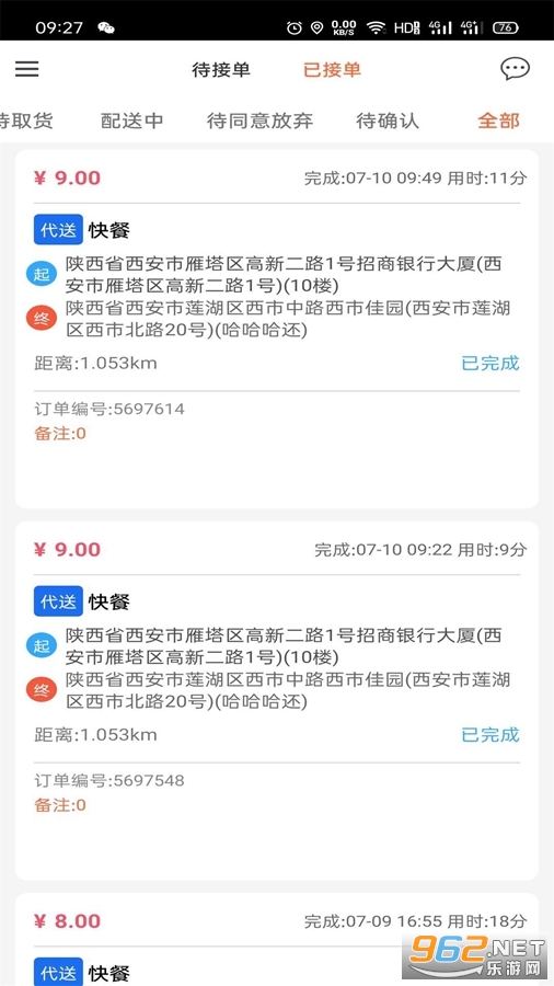 4、订单记录,所有订单都可以记录好,骑手也能方便的查询到订单的状态。