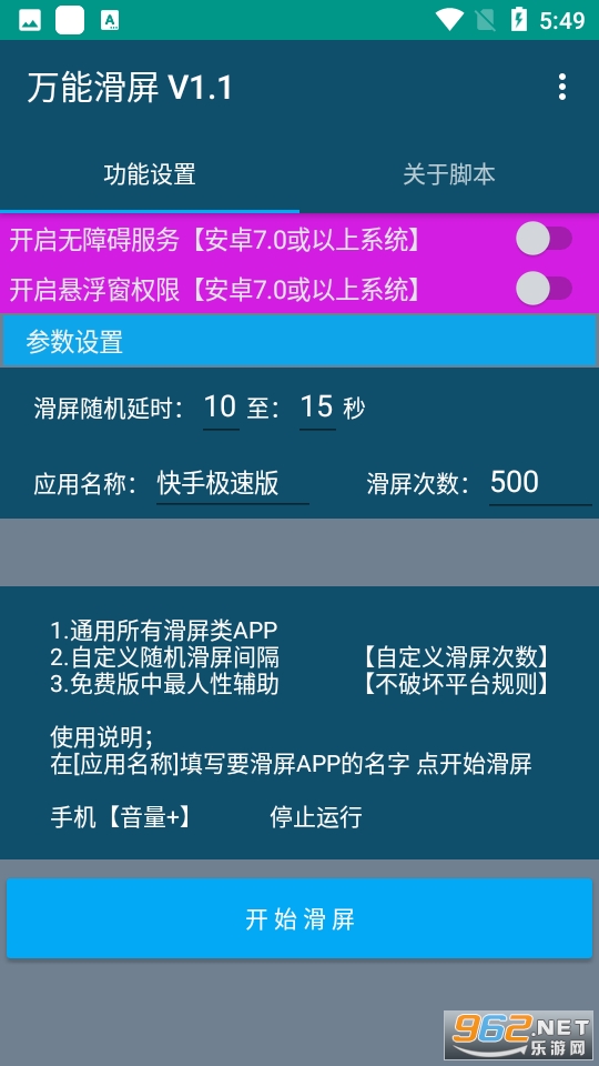 《万能滑屏app》是一款实用的手机辅助工具,可以帮助用户模拟手动操作自动滑屏,无任何广告,可用于各类短视频极速版挂机刷金币用。该软件功能强大,可以自动滑动屏幕模拟点击,屏幕上下滑动模拟等功能,而且还可以设置滑动的次数和时间,让用户办公学习更加的轻松方便。