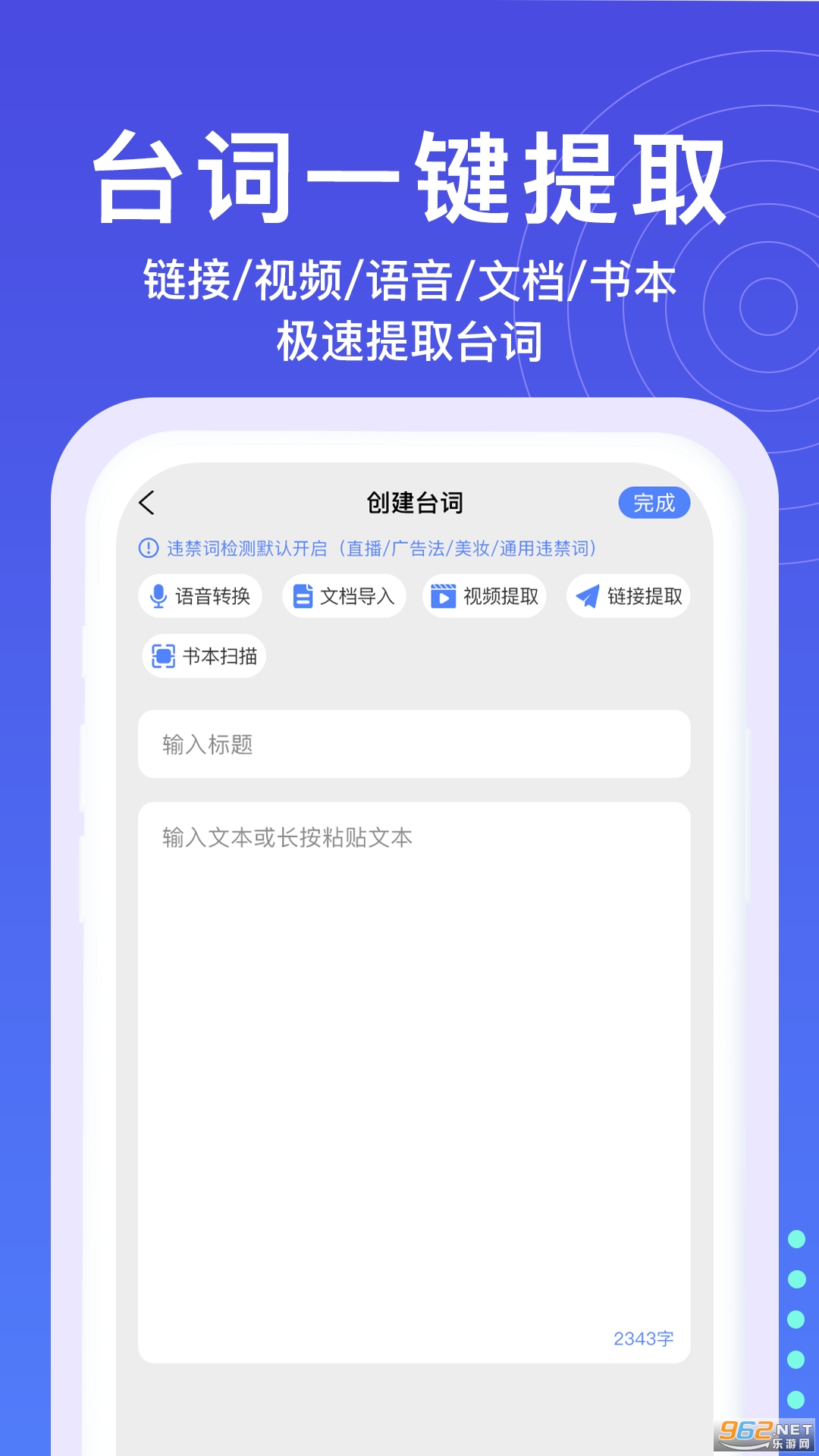 秒速提词: 该工具能够迅速提取台词,省去了繁琐的手动输入,节省时间,提高效率。