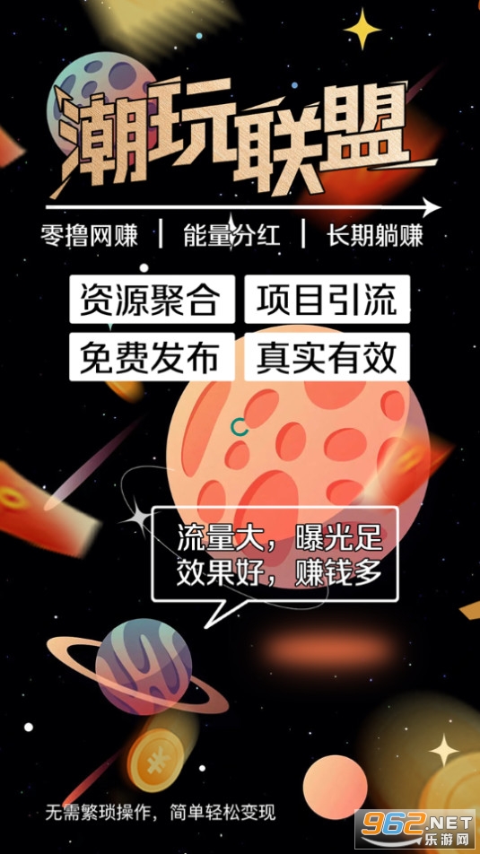 潮玩联盟下载安装包分享给大家,这是一款能真正实现躺赚的平台,让你的流量秒变现,真正靠谱的项目,没有复杂的操作,用户只需要每天挂机看广告就能赚钱,操作十分简单,看的越多赚的越多,邀请好友也能获得奖励,快来下载吧!