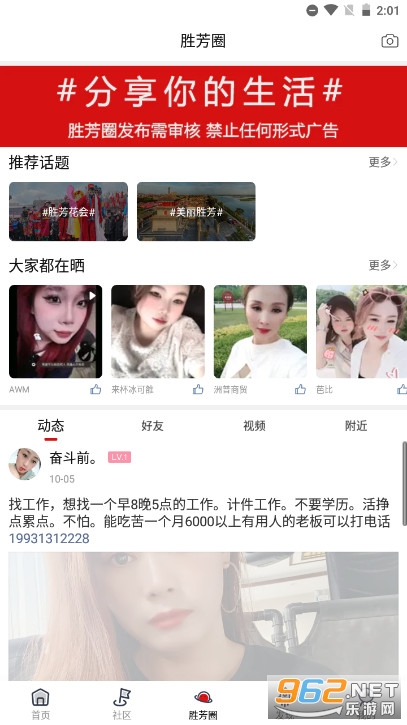 3、并你不仅可以在这里看到本地他人分享的生活动态,还能自由发表分享自己的生活