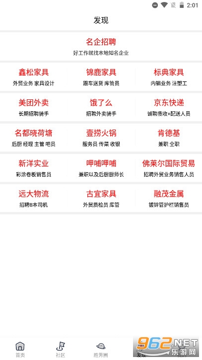 胜芳大杂烩招工最新为胜芳本地的市民提供了全方位的生活服务。这款软件功能全面,覆盖了求职招聘、房产租售、二手闲置、生活服务、本地吃喝玩乐、团购打折等服务,让用户能够轻松解决各种生活问题。