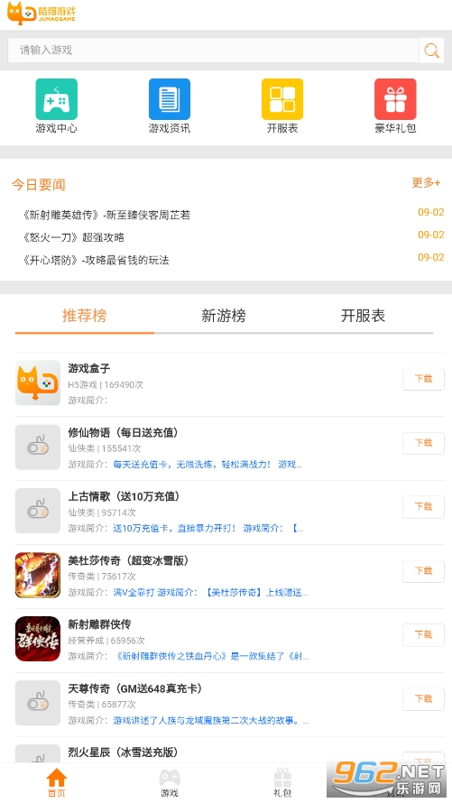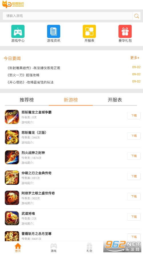 桔猫手游游戏平台是一个手游充值福利平台,平台以运营手机网游、H5游戏产品为主。有着简洁、易用的产品特性:完善的游戏开服表系统、游戏内置礼包快速领取功能、完善的平台币与充值体系。