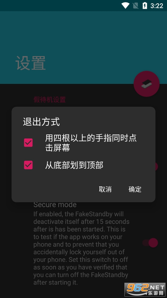 添加了默认激活的“安全模式”开关。如果激活,假待机将在超时后自行关闭。这是为了防止用户将自己锁定在自己的手机之外。