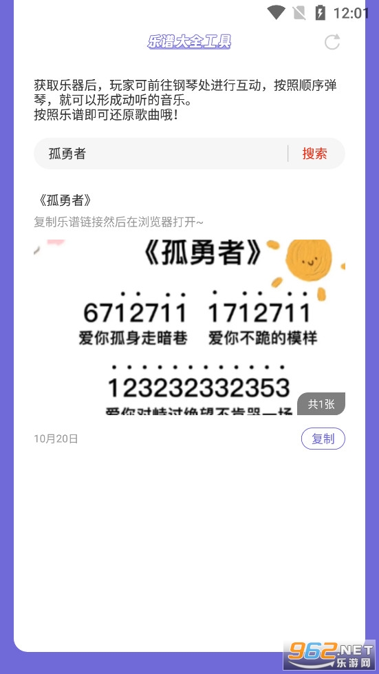 《元梦之星乐谱大全app》是一款为元梦之星玩家打造的元梦之星乐谱软件,软件中加入了大量的元梦之星乐谱,朋友们可以直接在软件中搜索想要的乐谱,输入乐谱关键字点击搜索即可,可以看到相应的乐谱,可以点击复制,可以进行模拟训练。