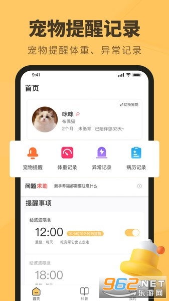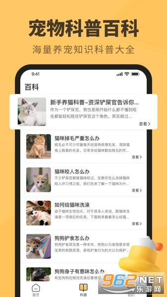 2、提供全面的宠物百科知识库,让用户了解和学习有关宠物饮食、健康和行为方面的知识。