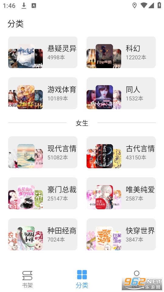 3、具体的小说分类,依据自己的喜爱查找感兴趣的小说;