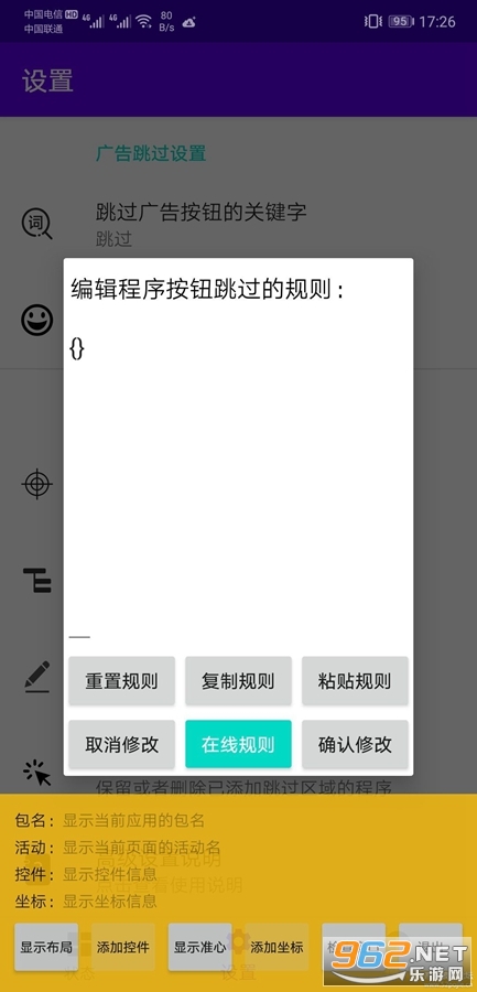 关键词:在应用程序中找到带有关键字的按钮,如果找到相应的按钮,它会自动点击它,供用户跳过广告。