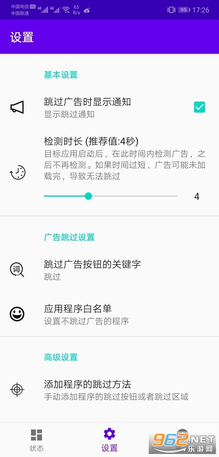该程序可以使用三种方法跳过打开屏幕广告。
