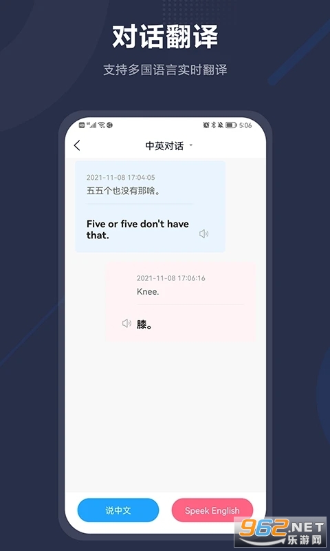对话翻译:目前支持多种语音对话翻译,可实时面对面交流