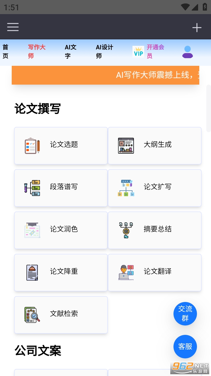 1.AI写作大师:论文写作神器,根据论文名称和关键字一键生成大纲,再生成整篇论文,还可以对文案进行续写、扩写、润色、翻译以及降低重复率等。