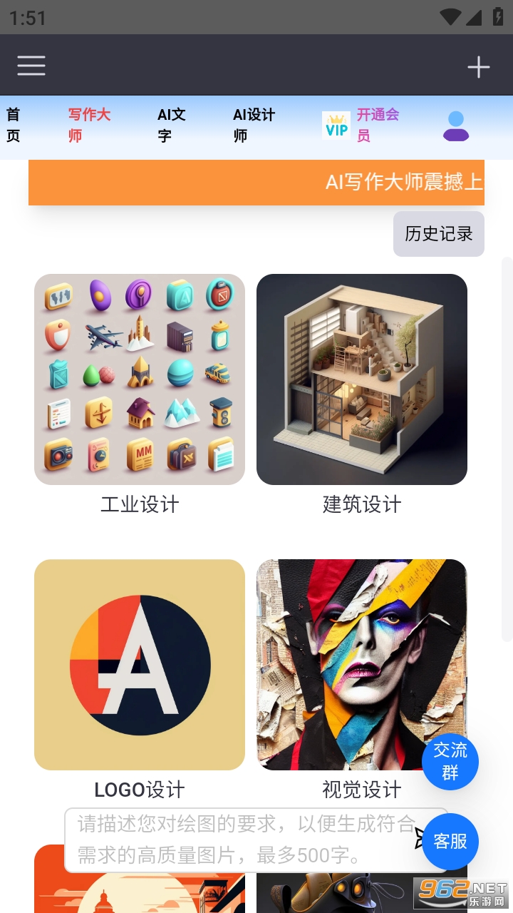 3.AI设计师:支持工业设计、建筑设计、LOGO设计、电子商务、插画与海报设计、视觉设计、影视与游戏设计等领域。利用人工智能技术,个性化定制高保真精美的图片,帮助您提高工作效率。