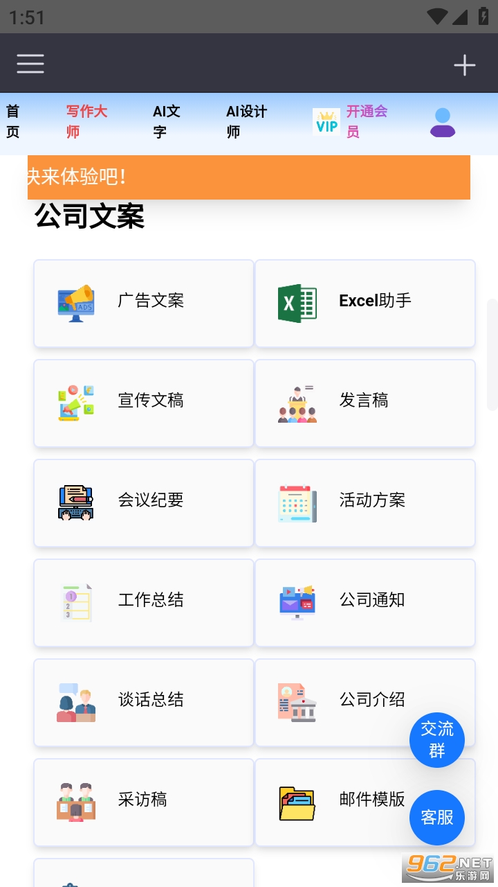 2.AI文字:支持60余个应用场景,包括论文助手、公司文案、抖音快手小红书营销、法律咨询、多语言翻译、科研课题、招投标书、辅助编程、学习与办公等各个领域。