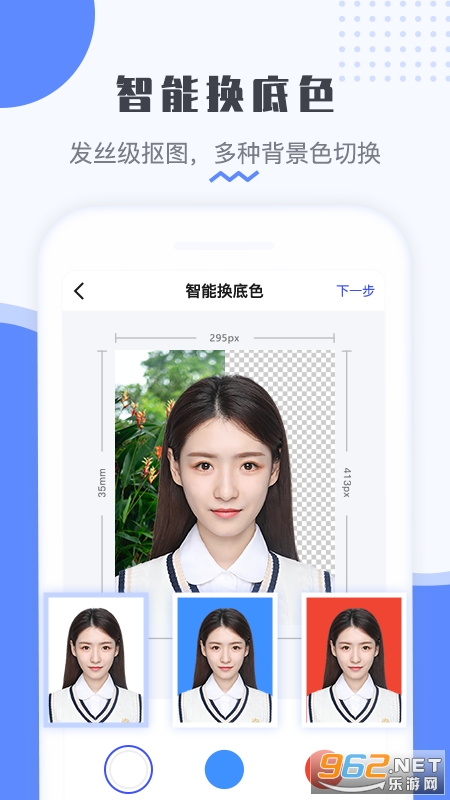 一寸证件照、学生证件照、工作证件照用手机随时随地就能制作!一键更换证件照底色,多种背景色可选!