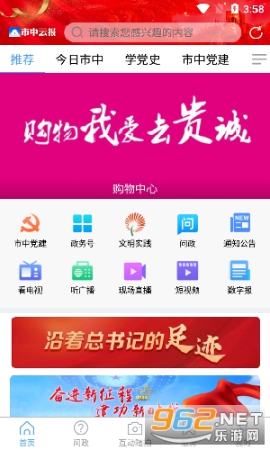 市中云报手机APP是区融媒体中心顺应新时代媒体融合发展要求,倾力打造的全资讯、综合性手机融媒体传播平台,是一款可以看新闻、看直播、在线查询、缴费、问政、购物的综合型新闻客户端。发布市中新闻资讯,引导舆论宣传,深度融合社保、交通、公安、医疗、教育等应用为一体,人与卡互通、人与服务互通,人与政府职能部门互通。市中区居民可借助市中云报手机App直接办理或预约办理网上的事项,实现“单一入口”,即网上“综合服务大厅”,一个APP解决所有问题。