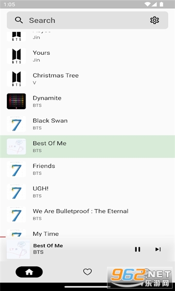 BTS歌曲库: 提供了包括他们所有的专辑和单曲在内的完整歌曲列表,用户可以随时选择播放他们最喜欢的歌曲。