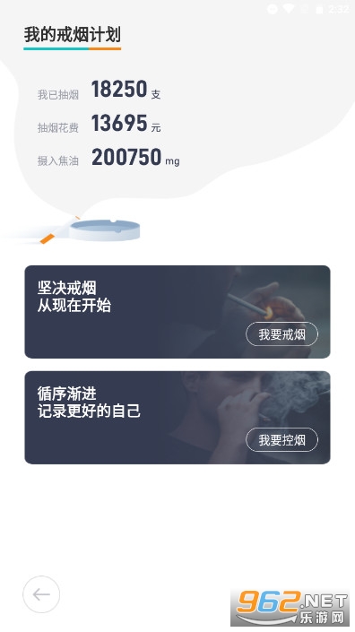 《无烟软件》是一个能帮助烟民戒烟的软件,用户设置戒烟计划后,软件会记录下每天的抽烟情况跟以往进行对比,随着天数的增加,习惯也会慢慢的养成,烟自然而然也就戒掉了。