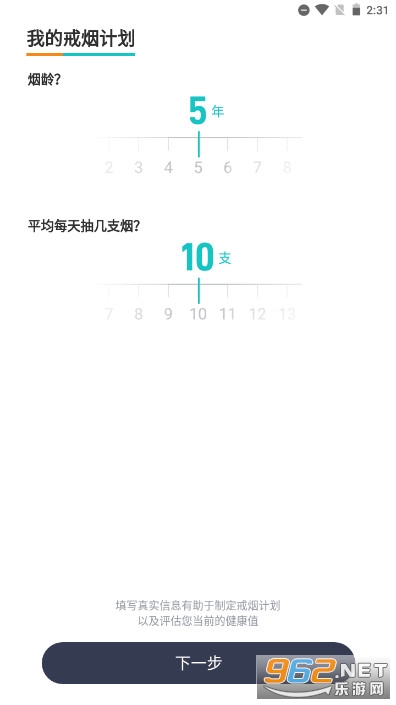 1、根据自身的烟龄、抽烟数量等信息填写数据