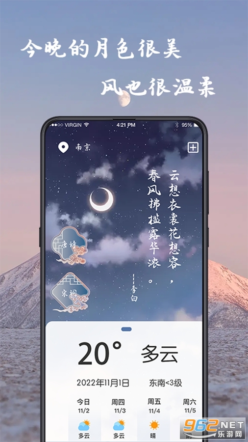 天气诗-诗意天气预报,伴随不同天气实况,展现不同天气诗词,唯美又浪漫的国风天气
