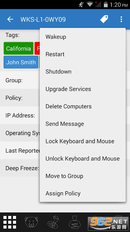 *在执行多台计算机上,如重新启动冻结,重新启动解冻,唤醒,重新启动,关机,运行Windows Update需求的行动,发送短消息,并添加标签。