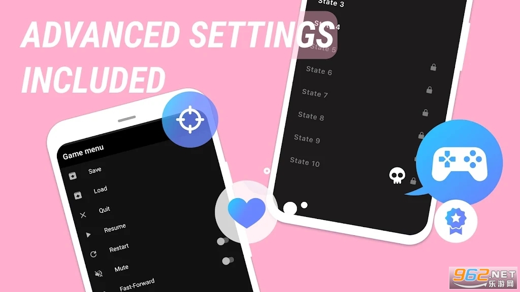 游戏模拟器包含高级功能:加载状态、保存状态、快进......