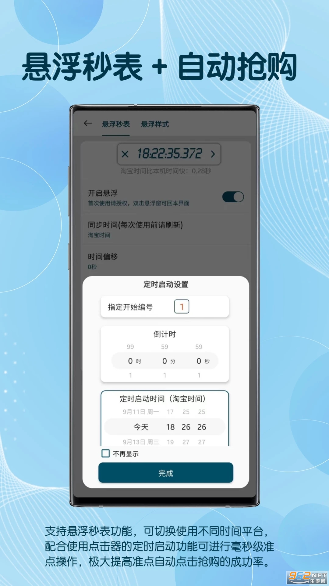 2.支持悬浮秒表功能,配合点击器使用可极大提高抢购成功率;