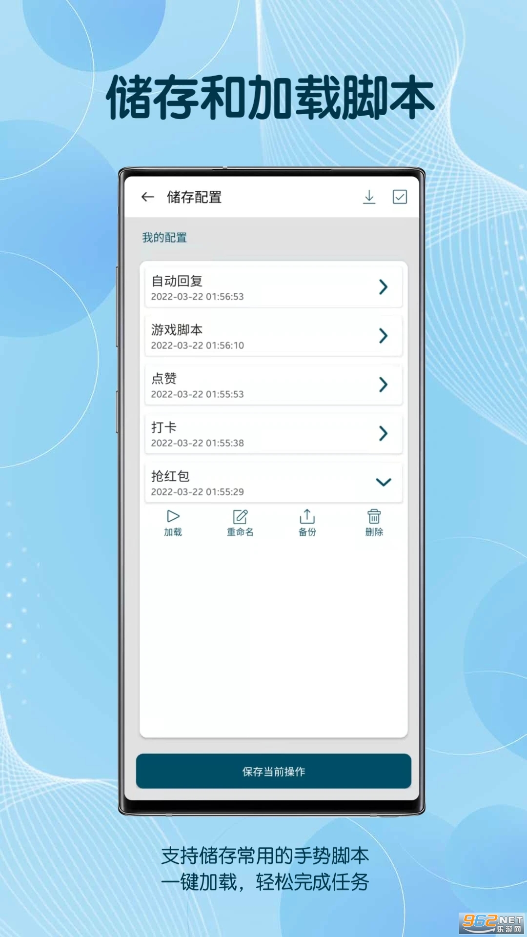 6.支持分享、储存和加载脚本,方便与朋友分享操作。