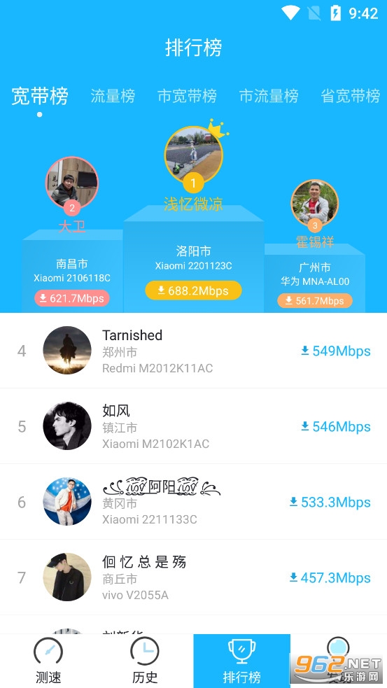 全国个人测速排行榜、城市排行榜、省排行榜,查看自己网速全国排名