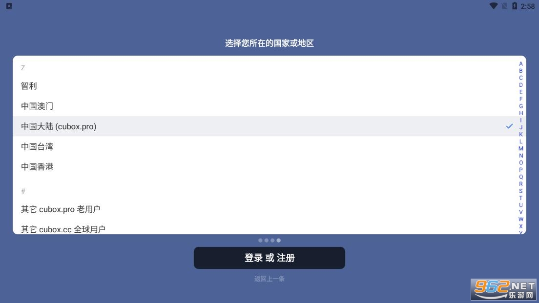 1、打开软件后,需要选择地区,然后进行登录或者注册。