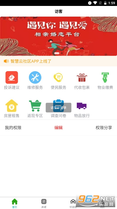 2、物业管家、物业公告、社区新闻、在线报修、访客通道等。