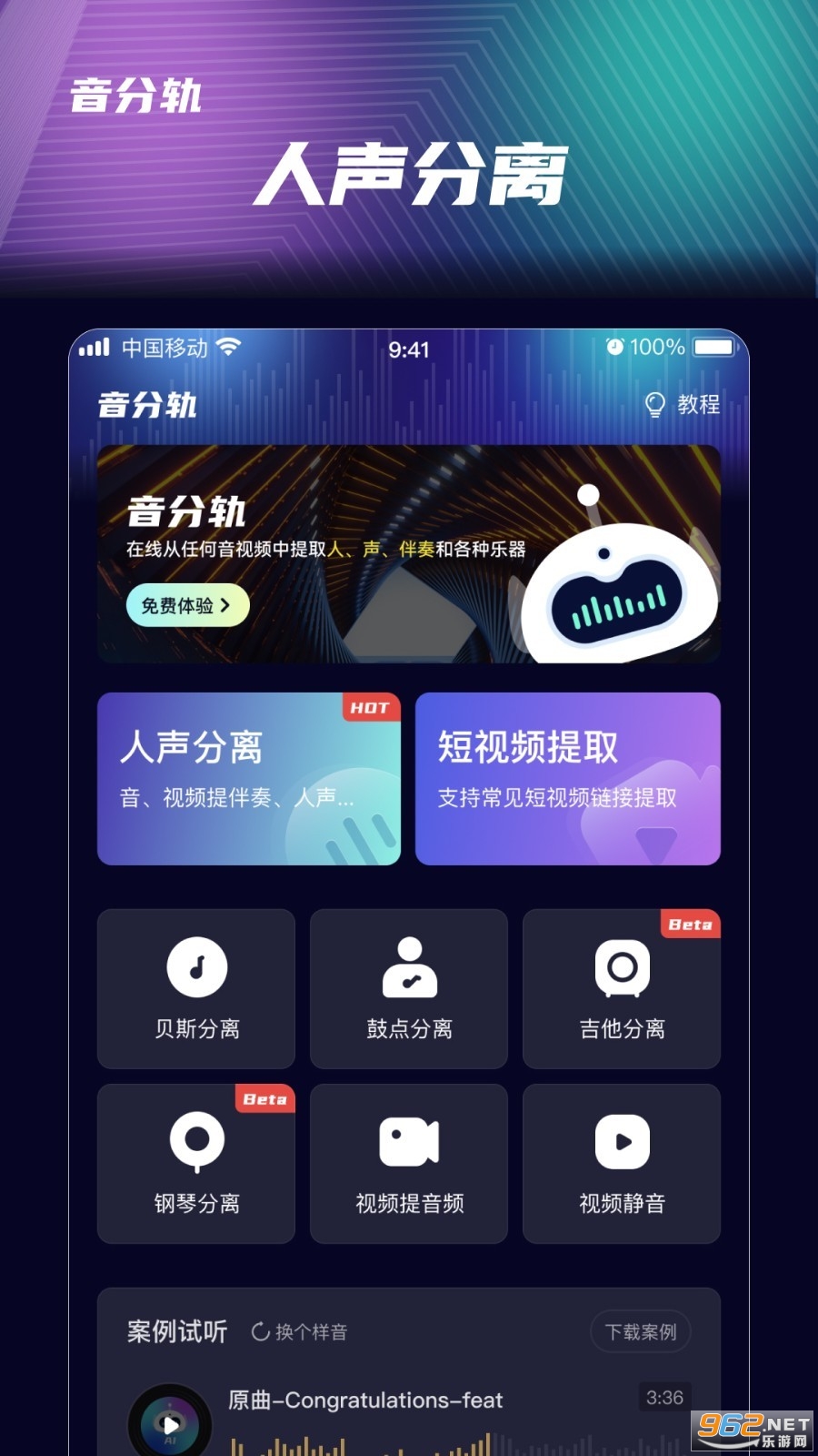 音分轨-人声分离软件,是使用领先的音频分离技术打造的在线声音轨道分离软件。