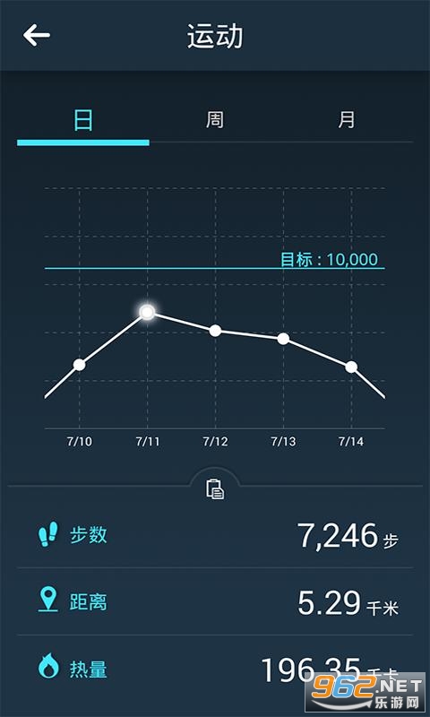 记录您每天的运动步数、运动距离以及消耗的卡路里、并累计查看周、月数据。