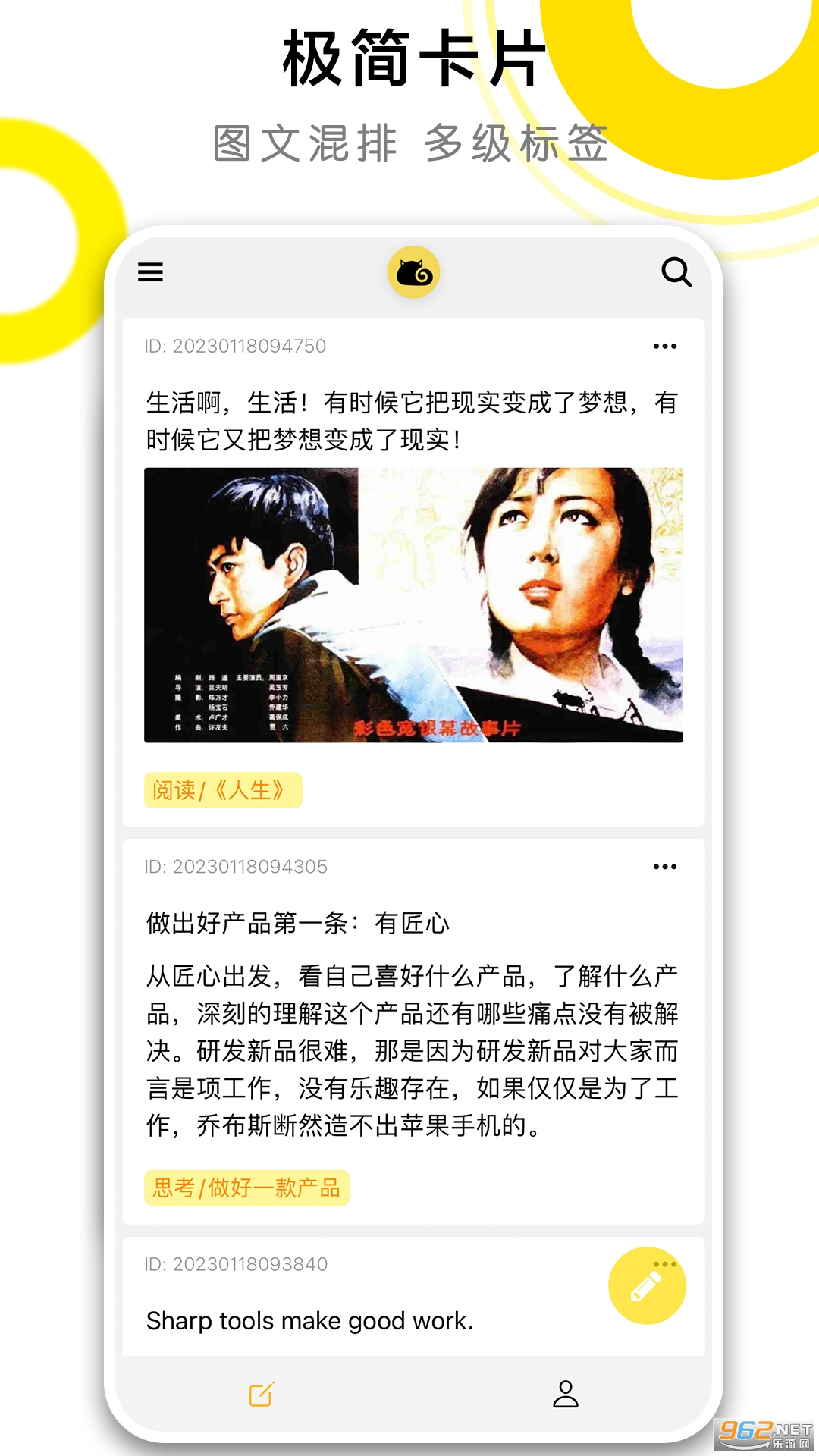 卡片式界面:CatNote以卡片的形式呈现笔记,让用户可以自由地拖拽、排序和归档,轻松管理不同类别和主题的笔记。