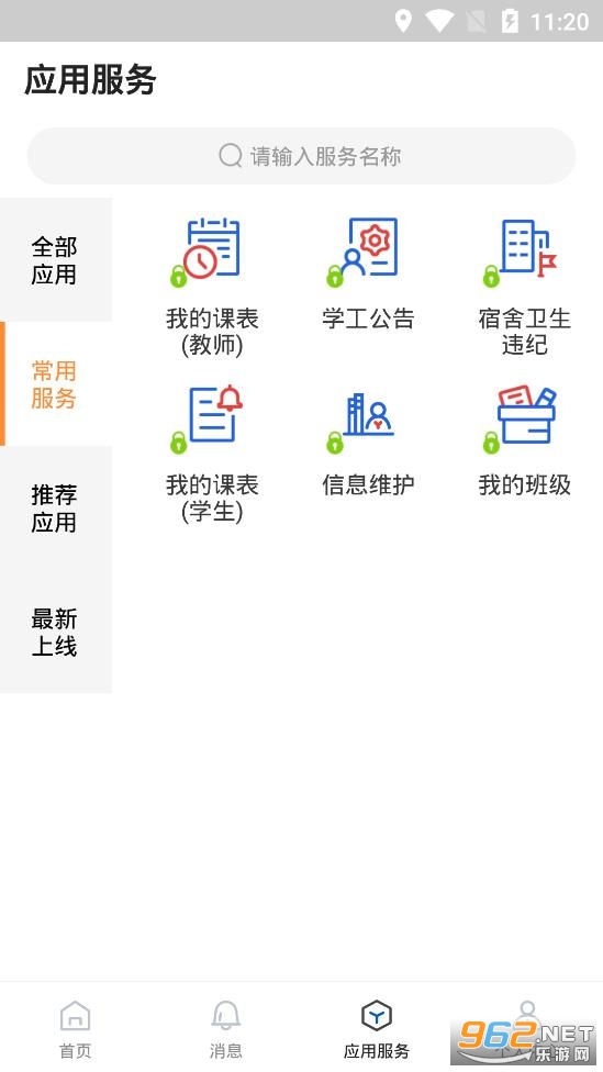 (3)登录成功后,点击页面下方的“应用服务”,然后再点击“迎新服务”,如下图所示: