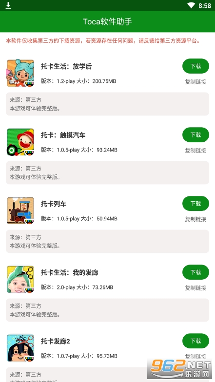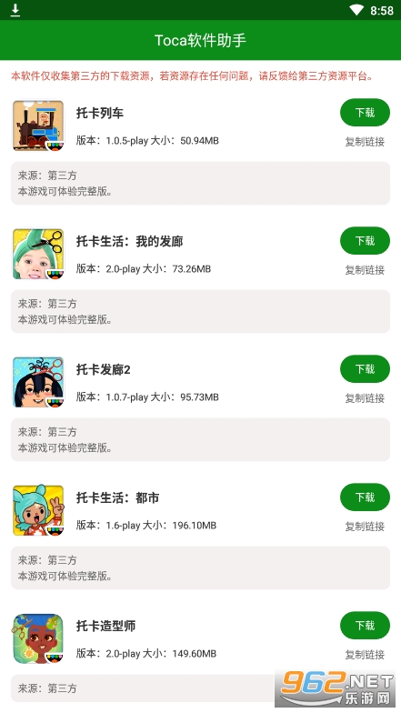 toca软件助手是一个专门为喜欢玩托卡系列的朋友们打造的托卡工具软件,收集更新第三方的下载资源,可以直接通过软件查看详细的破解内容,更多辅助功能将会在后续更新中陆续的加上。