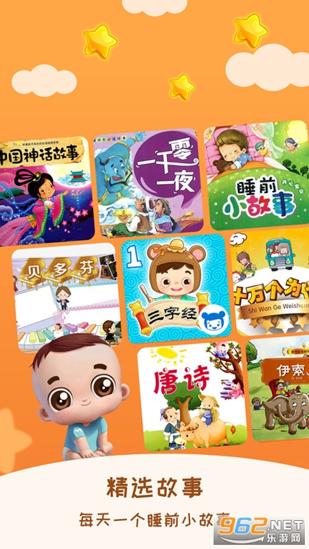 收录国内外海量儿童故事、睡前故事、经典儿歌、文学名著...满足不同年龄孩子需求。