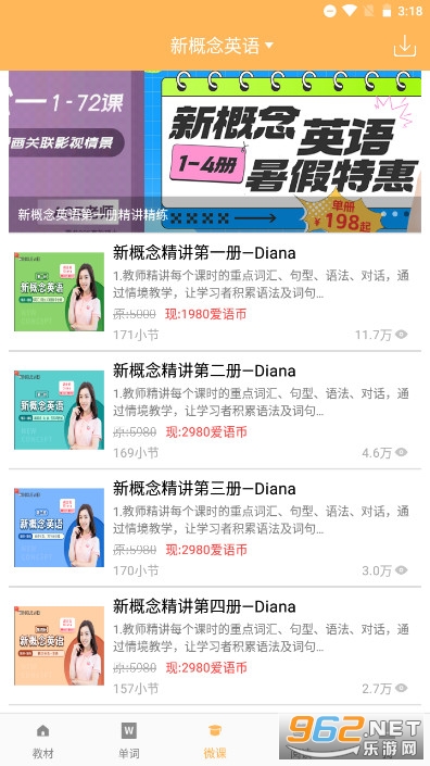 精品NCE四册,支持英美音切换,页面简洁不简单