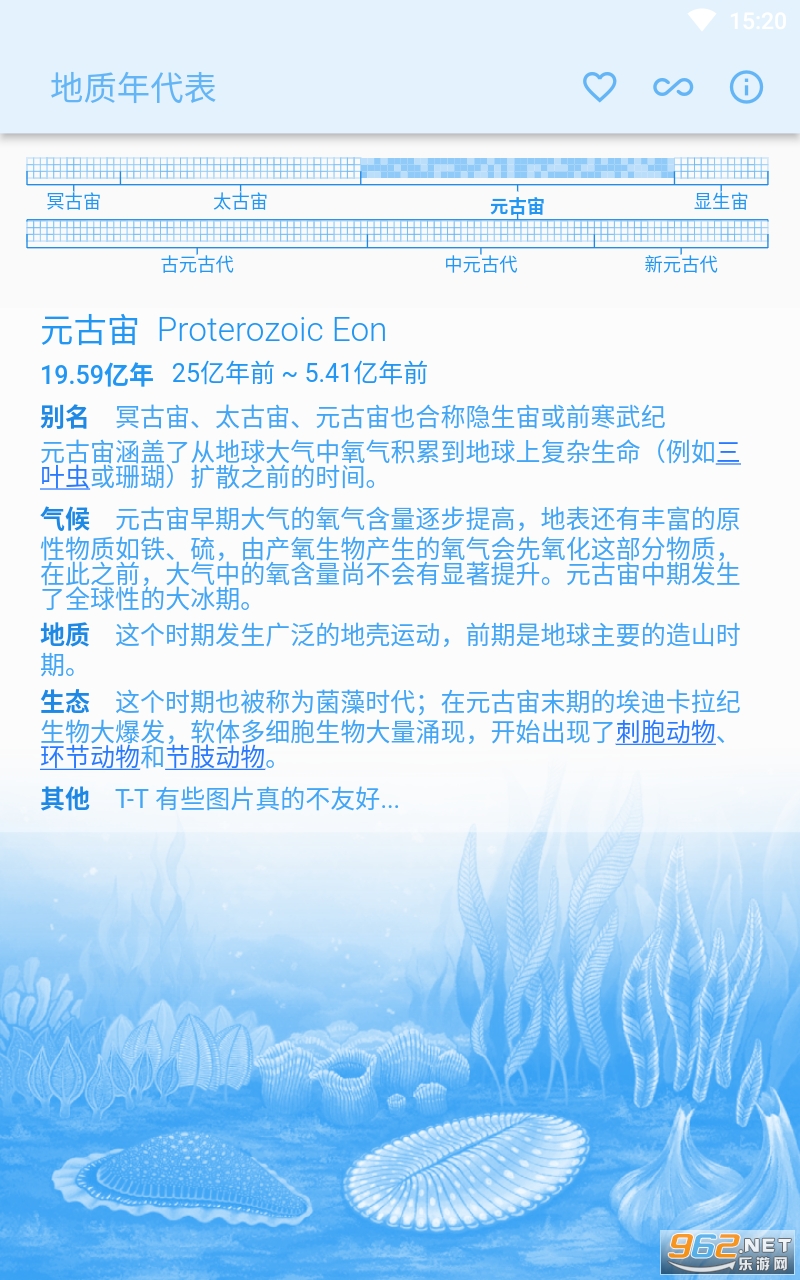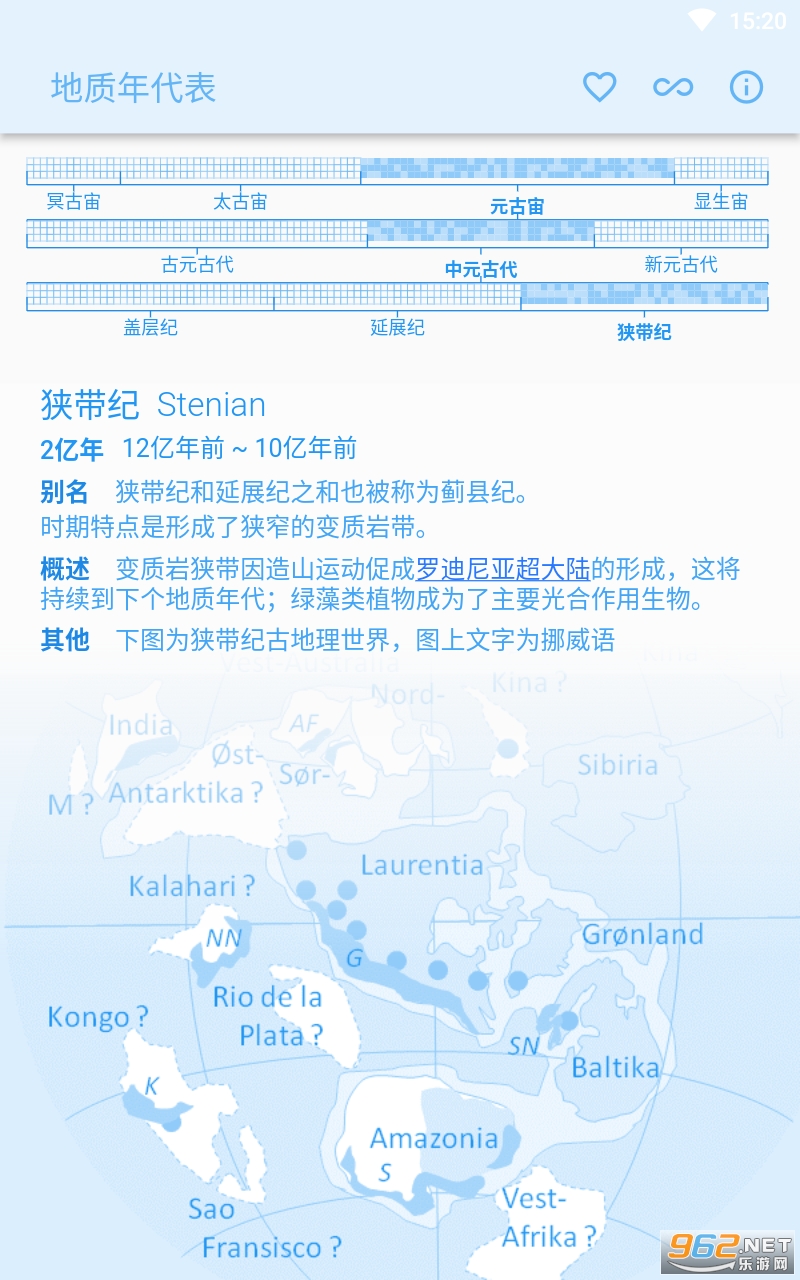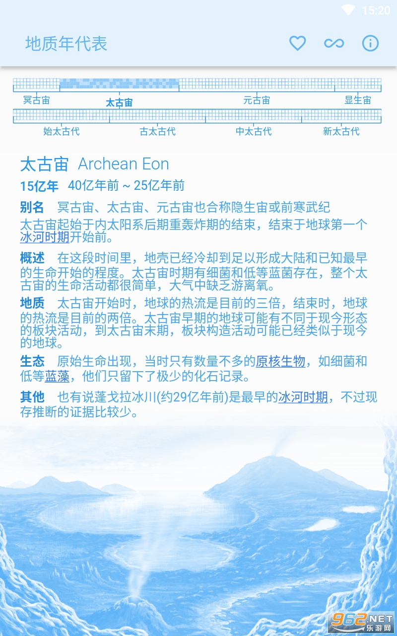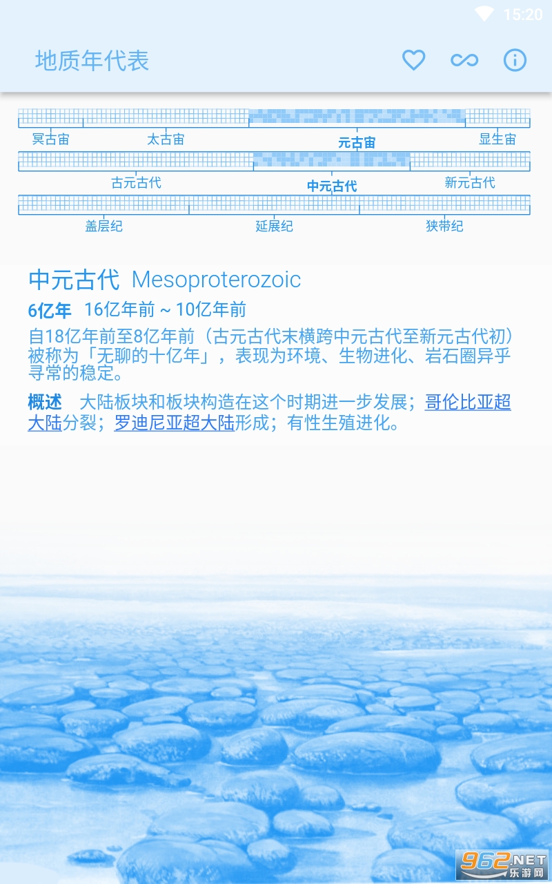 此应用程式显示地球历史的地质年代,对地质学家、古生物学家和地球科学爱好者来说很实用。