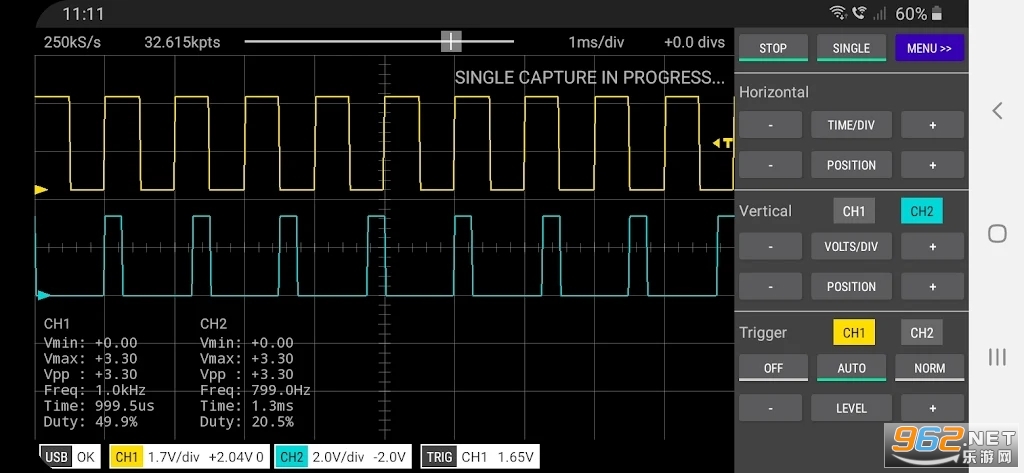 Scoppy示波器app是一款手机示波器软件,支持连接示波器设备,通过应用程序显示频谱,捕获当前信号,并通过图像显示相关数据。这更直观。将 Scoppy 应用程序与 Raspberry Pi Pico 或 Pico W 相结合,创建 500kS/s 示波器和 25MS/s 逻辑分析仪。