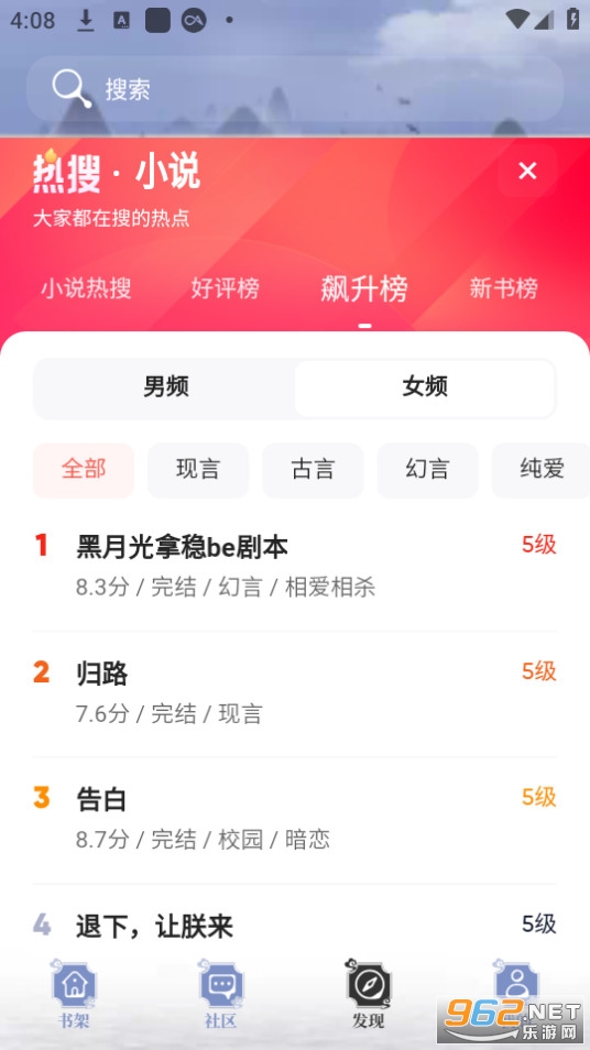 一款功能全面、界面简洁、资源丰富的小说阅读平台,为用户提供了便捷的阅读体验和丰富的社交分享功能,让用户随时随地享受精彩的阅读乐趣。有着极为简洁明了的阅读界面,让用户可以沉浸式地阅读小说。