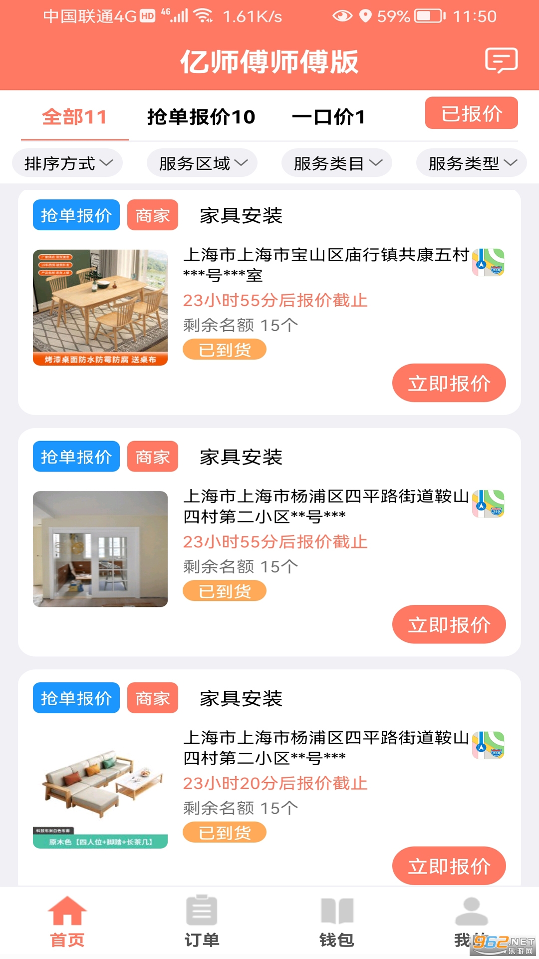 为全国的家居师傅提供家具、灯具、卫浴、晾衣架、窗帘等类目的安装、配送、维修、保养售后服务订单。