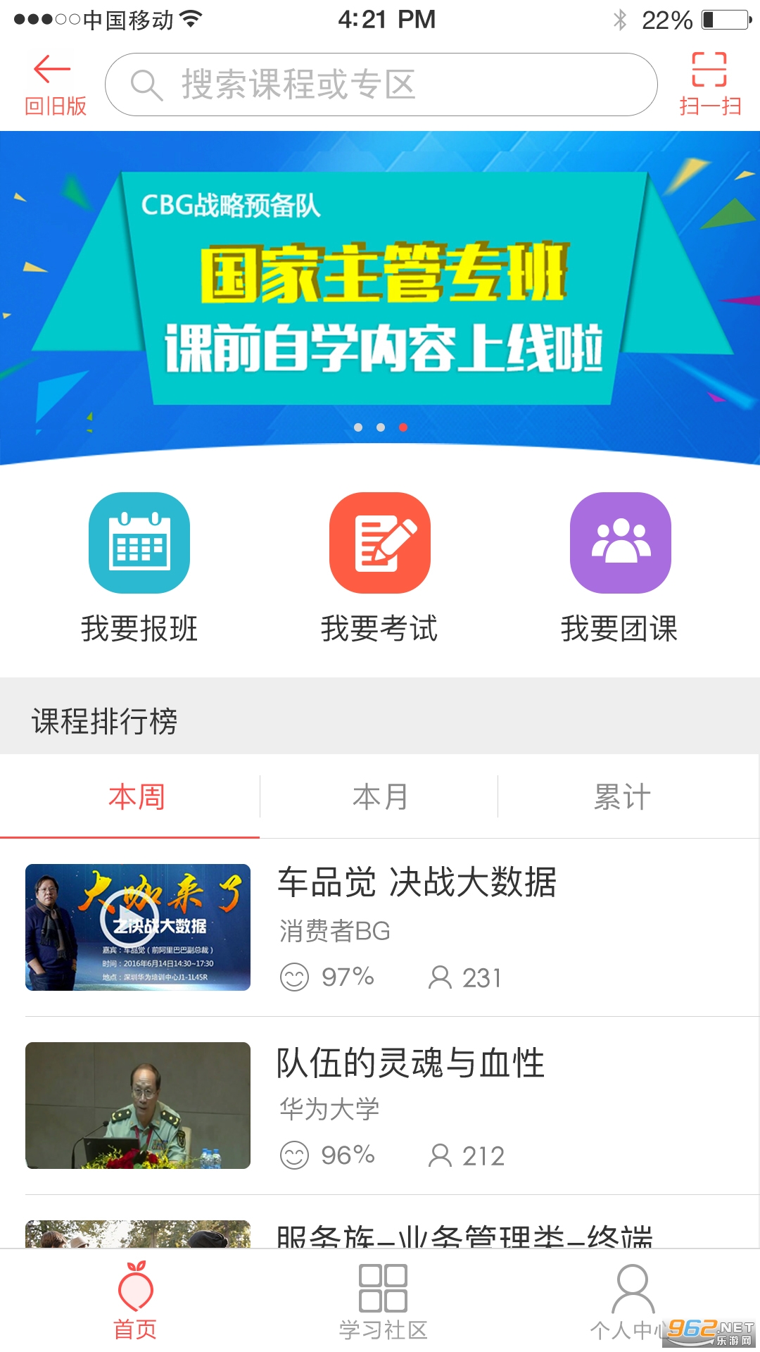 是提供给员工们使用的,还有和华为合作的伙伴也可以用,上面有很多的精品课程,还能报名参加考试,还支持直播课堂。