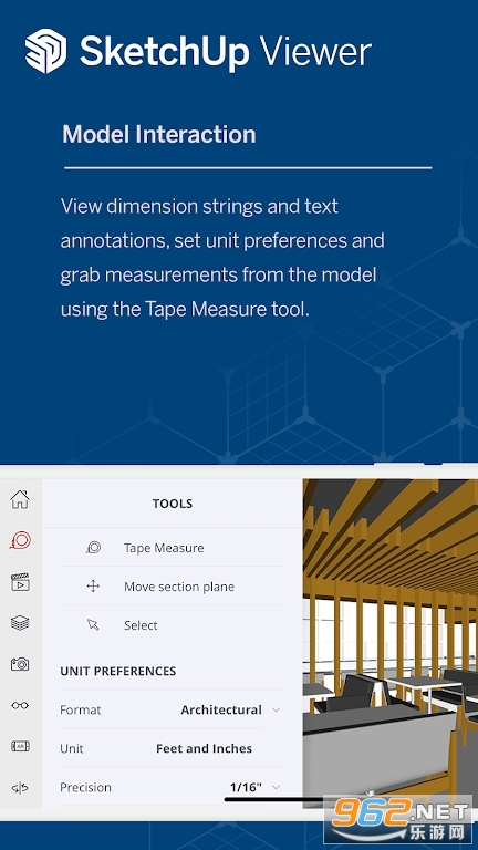《SketchUp Viewer安卓》专为建筑设计师、城市规划师、土木工程师等设计专业人士打造。SketchUp Viewer能够帮助用户快速创建、编辑、查看3D模型,同时支持多种文件格式,包括SketchUp、AutoCAD、Revit等。