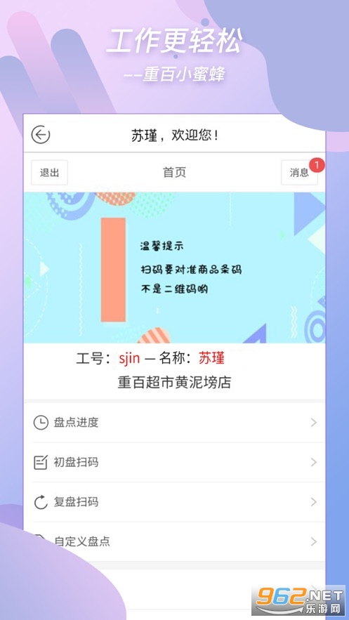 重百小蜜蜂app是重庆百货专为其员工制作,软件拥有手机盘点功能,可以帮助重庆百货内部员工更好的提高工作效率,更轻松完成工作。