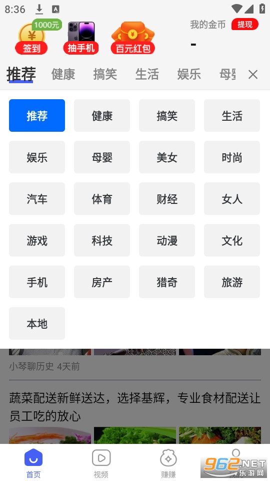 拥有简洁直观的用户界面,用户可以根据自己的兴趣爱好选择不同的频道订阅,如搞笑、美食、科技、明星娱乐等,每天都可以收到精心挑选的资讯推送,还能够赚取各种奖励!